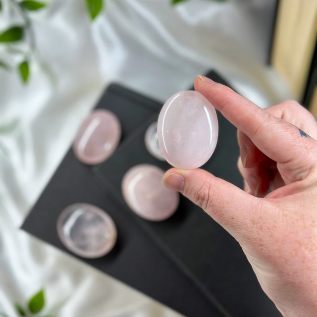 Bær kjærlighet i lomma med disse flate Rosenkvarts krystallene (4-5 cm, ca. 1 cm tykk) perfekt for å ha i hånden. Hver stein er unik i farge og form, nøye utvalgt for å spre varme og harmoni. Tilfeldig plukket - små naturlige merker kan forekomme.