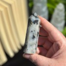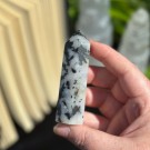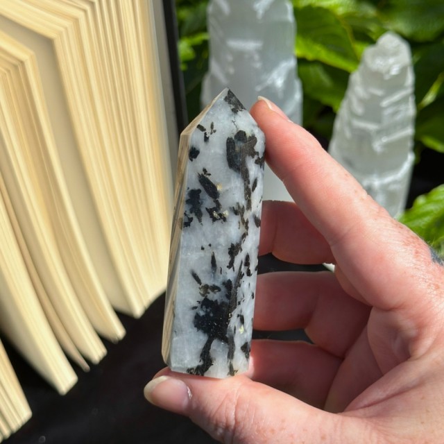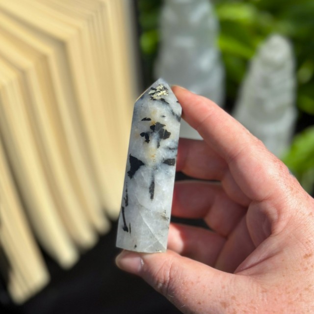 Turmalinkvarts bærer både natt og dag i sitt indre - en unik krystall som forener lys og mørke i perfekt harmoni. Den gir balanse, trygghet og klarhet på veien videre, og minner deg om at selv kontraster kan skape skjønnhet. Vekt: 93g Str: 4cm.