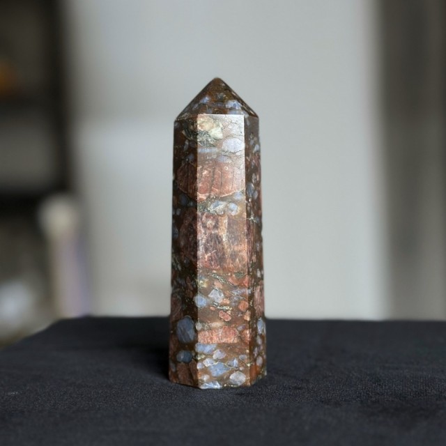 Que Seraens skapelse skjedde under et sentralt punkt i jordens formasjon for omtrent 1 milliard år siden. Dette er en vulkansk bergart med forskjellige sammensatte mineraler. Dette tårnet er 8,7cm og veier ca 73g.