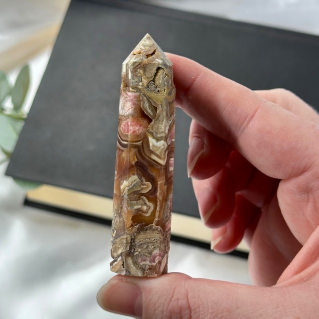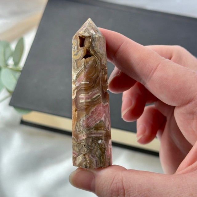 Nydelig lite Sjokolade Rhodokrositt point/tårn på 7,6cm og veier ca 54g.