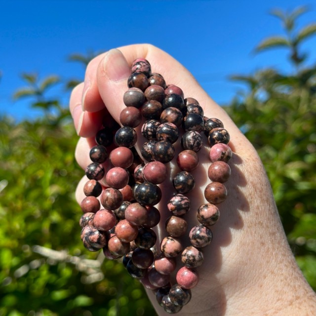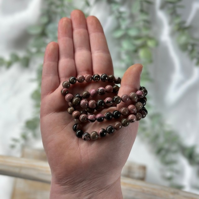 Rhodonitt armbånd (8mm, ca. 16-17cm) er hjertets krystall. Den gir kjærlighet, emosjonell balanse og tilgivelse - en vakker krystall som hjelper deg å hele sår og åpne hjertet ditt for fredfull harmoni.