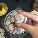 Denne vakre krystallen sies å ha rikelig med hvit Kalsedon, og Jaspis i nyanser av rosa og fersken.