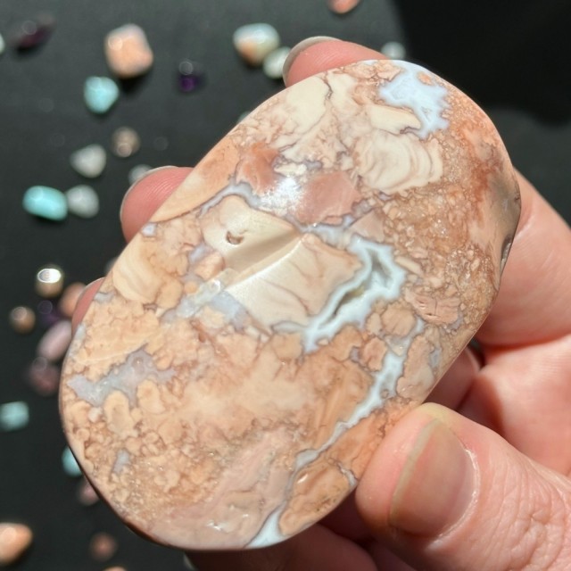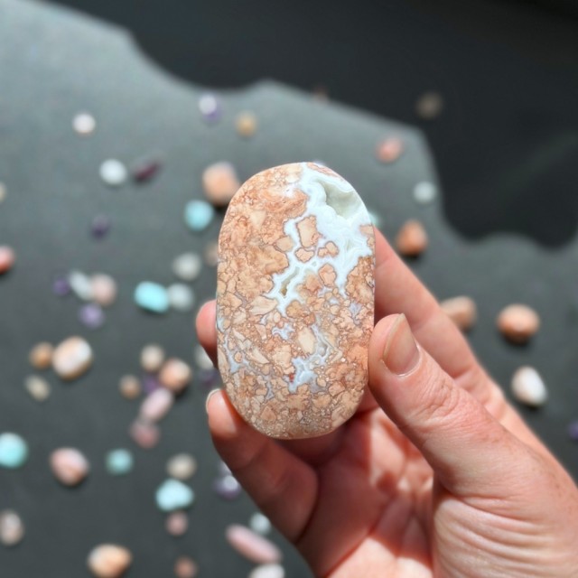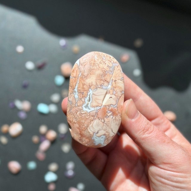 Cherry Blossom Agate/Blomster Agat Håndstein. Denne er ca 6,5cm lang og veier ca 90g. Det er den på bildene du får hvis du bestiller denne.