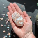 Nydelig rosa Sjø Jaspis håndstein. Denne er 5cm og veier ca 53,3g. Det er den på bildene du får hvis du bestiller denne. Vær obs på at minimale små merker kan forekomme. Bildene er tatt under dagslys, produkt kan avvike fra bildene. Se nøye før kjøp.