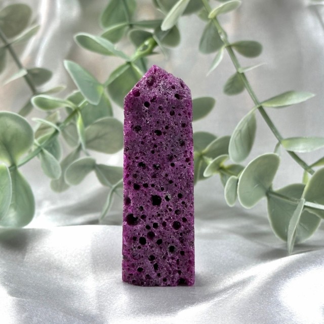 Blå Aragonitt er en beroligende stein som minner om stillheten i havet. Den lindrer stress, styrker kommunikasjon og bringer fred, klarhet og egenkjærlighet. Dette tårnet er 107g og 9,1cm høyt.