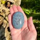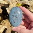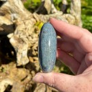 Sjø Jaspis håndstein. Denne er 4,9x5,1x2,3cm og veier ca 76g. Det er den krystallen du ser på bildene du får hvis du bestiller denne. Bildene er tatt i studiolys.