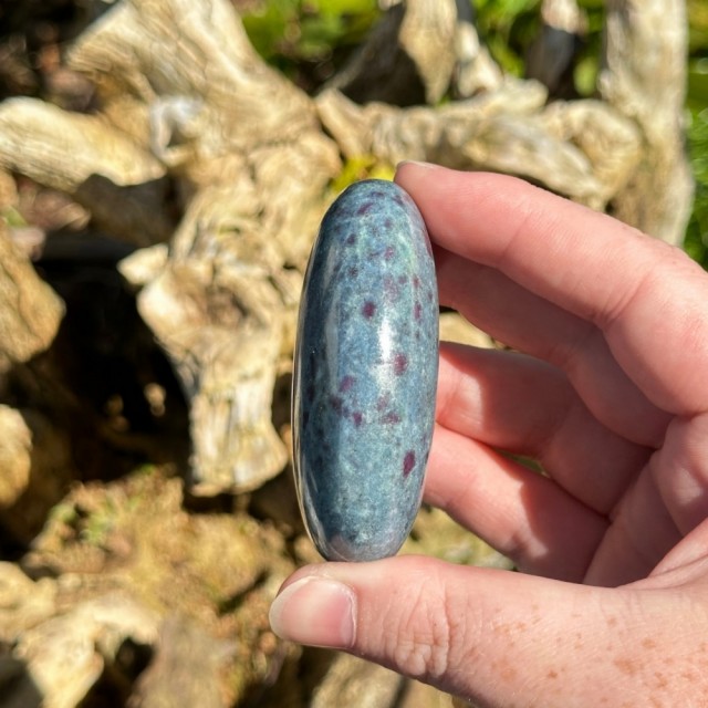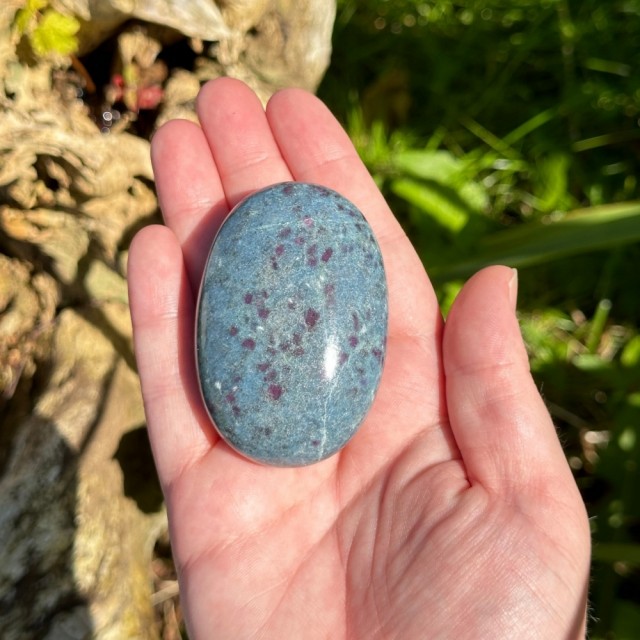 Rubin i Zoisitt, også kjent som Anyolitt, kombinerer grønn Zoisitt med dyp rød Rubin. En levende stein for mot, kjærlighet og selvtillit - naturens egen hjertekraft. Vekt: 221g Str: 5,2cm. Redusert pga runde poleringsskraper - se bilder før kjøp.