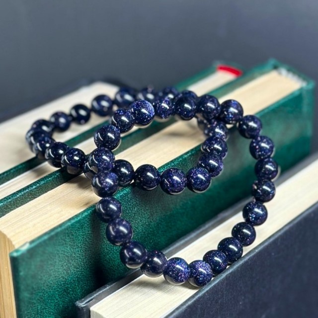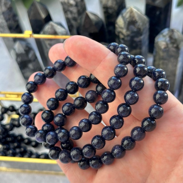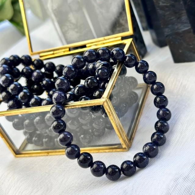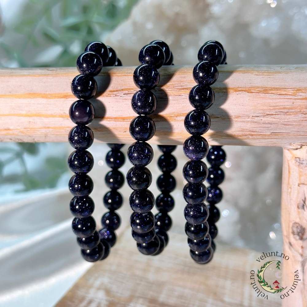 Disse armbåndene er 8mm. Den er laget ved å smelte Silika, Boraks, Kobberoksid og andre kjemikalier. Den har hovedsakelig en rødbrun eller gylden farge med kobberflekker. Gull Stjernestein er glatt og polert med reflekterende inneslutninger.