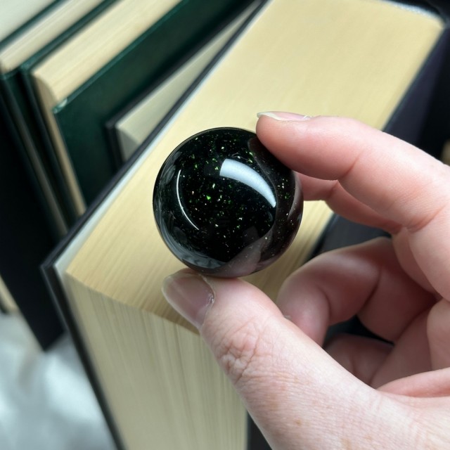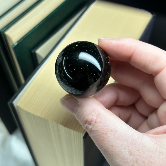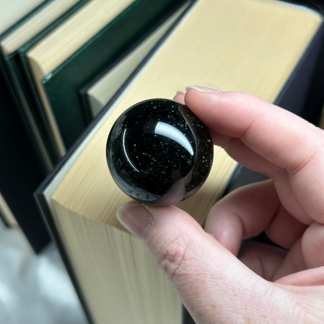 Stjernestein/Sandstone/Goldstone er faktisk en nydelig menneskeskapt stein. Dette tårnet er 8cm og veier 72g. Det er den på bildene du får hvis du bestiller denne. -Små merker kan oppstå.