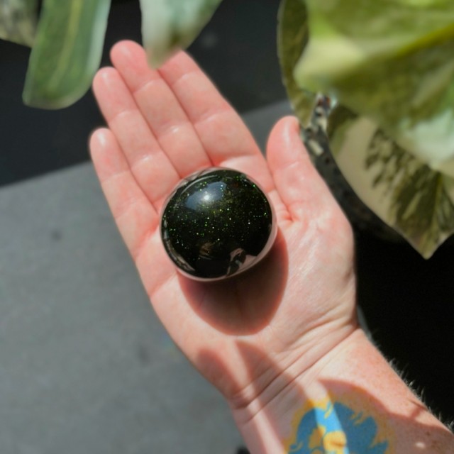 En nydelig Bergkrystallkule på 143g og 4,6cm fylt med glitrende inneslutninger av Hematitt og limonitt. Denne naturlige kombinasjonen skaper et vakkert spill av flamme og gulltoner som symboliserer klarhet, livskraft og indre balanse.