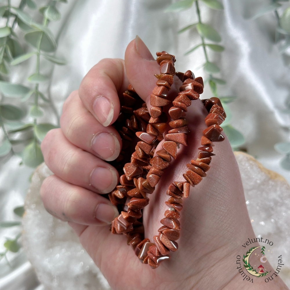 (Gull Stjernestein er et menneskeskapt glitrende farget glass. Den er laget ved å smelte Silika, Boraks, Kobberoksid og andre kjemikalier. Den har hovedsakelig en rødbrun eller gylden farge med kobberflekker. Gull Stjernestein er glatt og polert med reflekterende inneslutninger.)