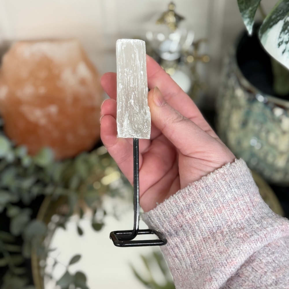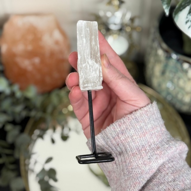 Søtere enn honning og melk, Selenitt begynner å jobbe umiddelbart med å hjelpe deg med å kvitte deg med angst og bekymringer som kan tynge hjertet. Dette er en stein som elsker å være lett, som ønsker å vokse vinger, og som ikke ønsker noen form for anker eller bånd fra katastrofal tenkning. For å hjelpe deg med å frigjøre deg fra disse sammenfiltrede tankene, begynner Selenitt først med å hjelpe deg med å lette deg selv ved å tenke med krystallklar klarhet. Den hjelper deg å bli bevisst på omgivelsene dine og gir upåklagelig dømmekraft og sunn innsikt slik at du kan jobbe nøye med sjelen din for å ta de riktige avgjørelsene. Dette er en fantastisk stein som inviterer deg til å være åpen og ærlig, ren og frigjort, og til å gi tilgivelse til situasjoner som ikke lenger tjener deg. Selenitten hjelper deg å gjøre det følelsesmessige arbeidet med å gi slipp, slik at du er i stand til å reise deg i din fulle form for kraft.