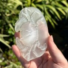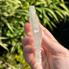 Selenitt er en utrolig skjør krystall og kommer som regel med små merker på seg fra frakt. Den er faktisk så delikat at så mye at selv en negl kan få steinen til å få riper. Denne er 10x6,4x1,5cm og veier ca 83g.
