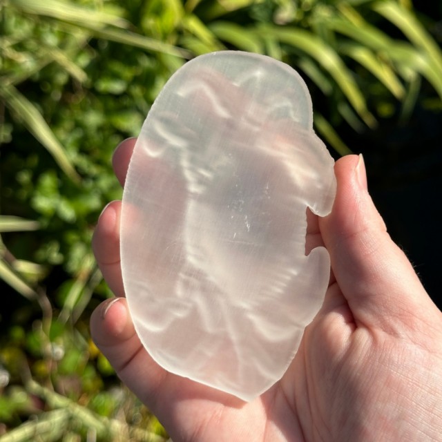 Søtere enn honning og melk, Selenitt begynner å jobbe umiddelbart med å hjelpe deg med å kvitte deg med angst og bekymringer som kan tynge hjertet. Dette er en stein som elsker å være lett, som ønsker å vokse vinger, og som ikke ønsker noen form for anker eller bånd fra katastrofal tenkning. For å hjelpe deg med å frigjøre deg fra disse sammenfiltrede tankene, begynner Selenitt først med å hjelpe deg med å lette deg selv ved å tenke med krystallklar klarhet. Den hjelper deg å bli bevisst på omgivelsene dine og gir upåklagelig dømmekraft og sunn innsikt slik at du kan jobbe nøye med sjelen din for å ta de riktige avgjørelsene. Dette er en fantastisk stein som inviterer deg til å være åpen og ærlig, ren og frigjort, og til å gi tilgivelse til situasjoner som ikke lenger tjener deg. Selenitten hjelper deg å gjøre det følelsesmessige arbeidet med å gi slipp, slik at du er i stand til å reise deg i din fulle form for kraft.