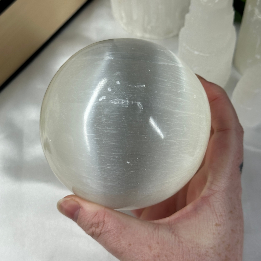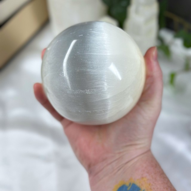 Stor Selenitt Kule 10cm [Satin Spar] #1