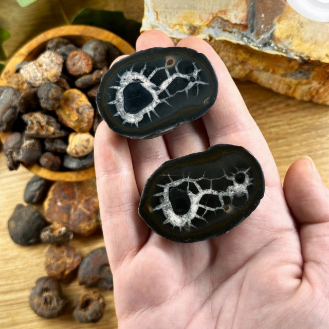 Halvpolerte Septarian Skiver! Disse er ca 3-6cm. Prisen er per stk.