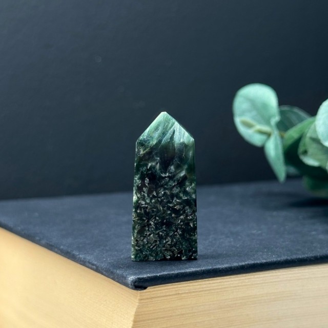 Sjø Jaspis er havets hjertestein - en magisk krystall som bringer lykke, emosjonell balanse og selvrefleksjon. Perfekt for deg som ønsker å leve mer i flyt og glede. Dette tårnet er 15cm høyt og veier ca 291g.