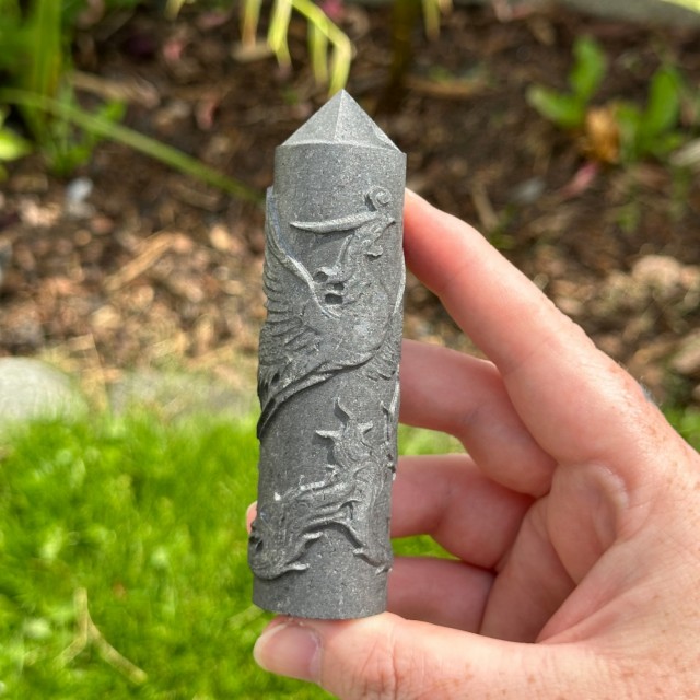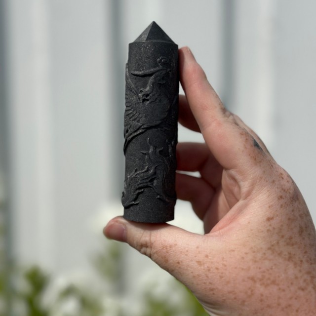 En kraftfull Shungitt kule fra Karelia, Russland (7cm og ca 450g.). En naturlig beskytter og jordingsstein - et stykke urgammel magi. OBS: Shungitt kan avfarge.7cm og ca 450g.