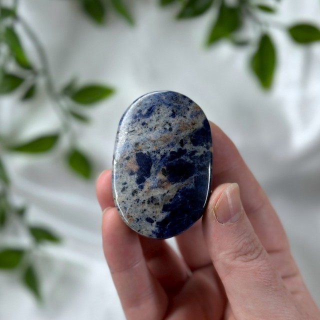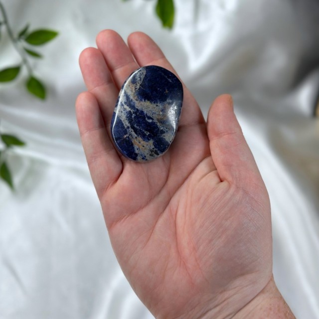 Nydelig Sodalitt håndstein. Denne er på 5,6cm og veier ca 75g. Det er den krystallen på bildene du får hvis du bestiller denne.