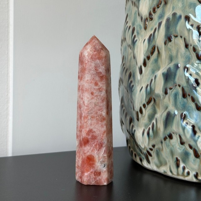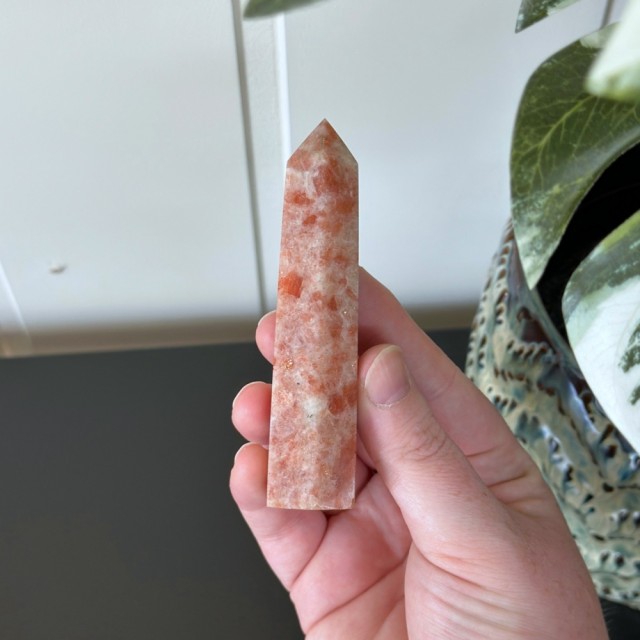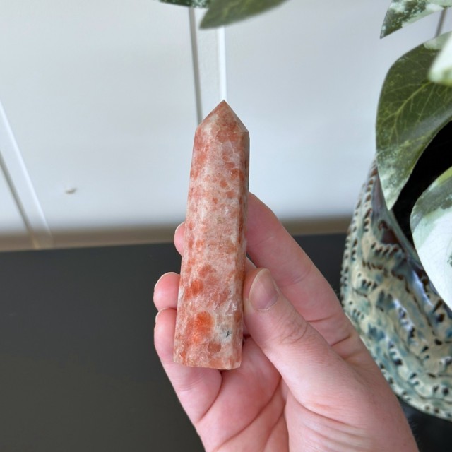 Her har du den fantastiske Solsteinen! Dette er en stein vi kaller "En glad stein" eller "Lykkestein". Denne er 9,8cm og veier 89g. Det er den krystallen du ser på bildene du får hvis du bestiller denne.
