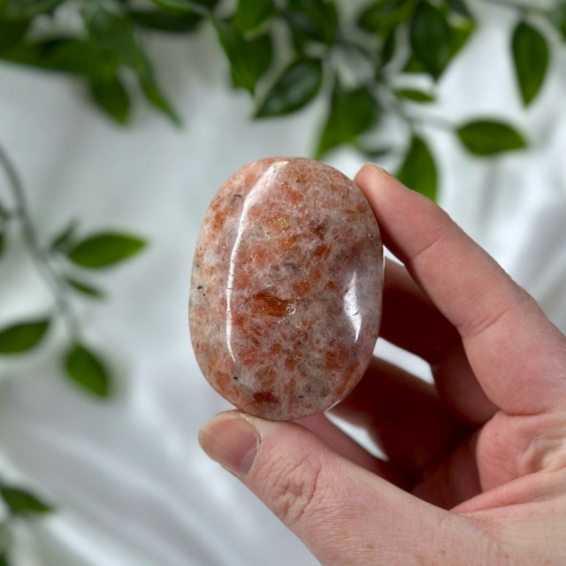 Solsteinen er et magisk medlem av Feldspat-familien, og noen ganger går den under andre navn som Aventurin Feldspat eller Goldstone, men vi tror den bærer navnet Solstein best. Med sin gylden oransje varme, glitrende lag og iriserende stil når den fanges i lyset, omfavner Solstein steinen sitt slektskap med den store ildkulen på himmelen, og gjenspeiler dens livgivende egenskaper og strålende følelse av at alt kommer til å ordne seg.