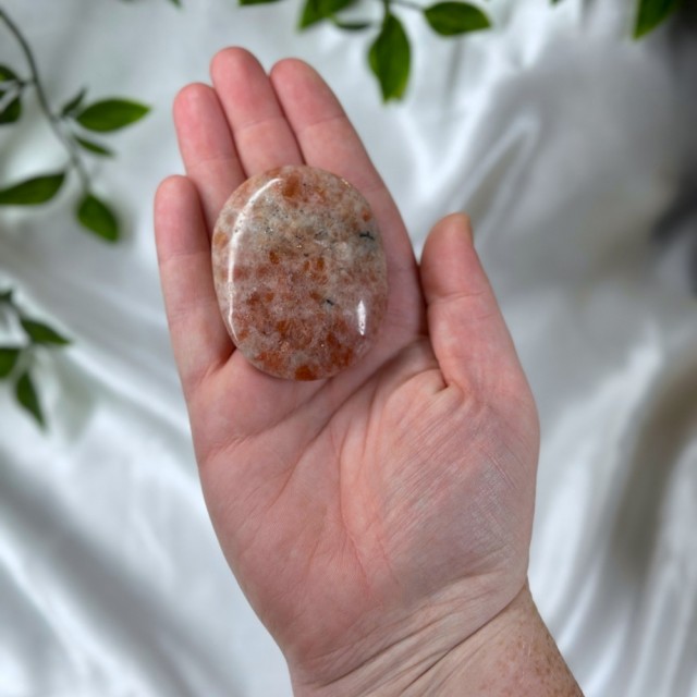 Solsteinen er et magisk medlem av Feldspat-familien, og noen ganger går den under andre navn som Aventurin Feldspat eller Goldstone, men vi tror den bærer navnet Solstein best. Med sin gylden oransje varme, glitrende lag og iriserende stil når den fanges i lyset, omfavner Solstein steinen sitt slektskap med den store ildkulen på himmelen, og gjenspeiler dens livgivende egenskaper og strålende følelse av at alt kommer til å ordne seg.