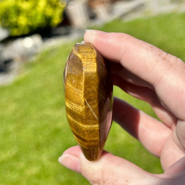 Gold tiger eye combines earth energy with the energies of the sun to create a high vibrational state that is grounded while bringing the spiritual energies to you. If placed on the third eye it will enhance your psychic abilities. Tiger eye balances the lower chakras and stimulates the rise of kundalini energy. Gold tiger eye livens your ability to remember your dreams and use the dreams for spiritual advancement. This stone sparks your imagination, which is the key to understanding your intuition. The energy of this stone reminds you to embrace your spiritual potential and allow divinity into your spiritual practice. Use this stone to connect with the spiritual power of the sun as a source of nourishment for your soul.