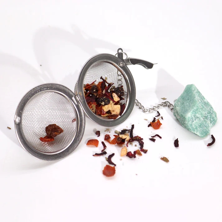 Er du klar til å legge til et snev av magi og eleganse til samlingen din av te eller krystaller? Hver tesil har en ekte rå edelsten i kjernen, noe som gjør dem unike og flotte å se på. Det fine nettinget i rustfritt stål sikrer en sømløs og fornøyelig teinfusjon, slik at smaker og aromaer blir verdsatt fullt ut. Krystallen som er festet, fungerer som et håndtak mens du trekker din favoritt-te.