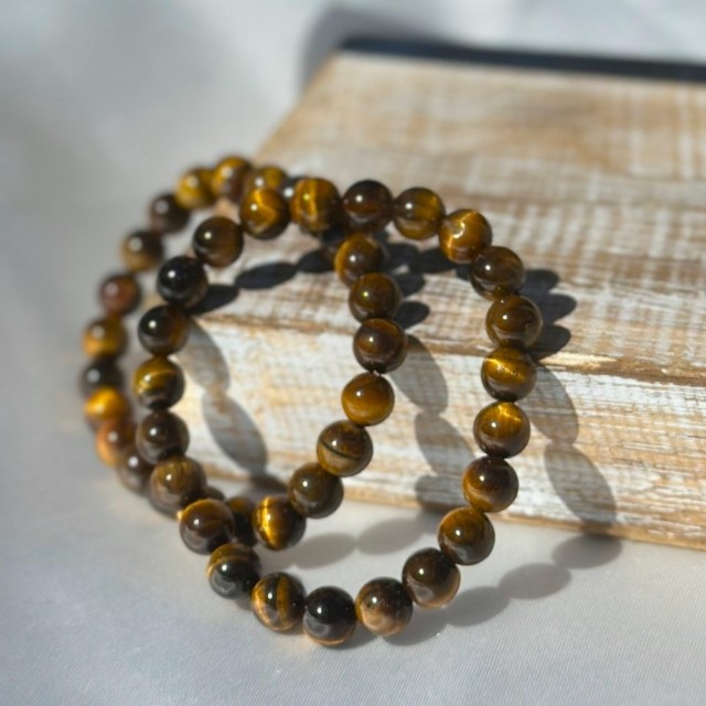 Bær kraften fra naturens vokter med dette magiske armbåndet i Tigerøye. Hver 8mm perle skimrer i gull og jordtoner, som et øye som vokter over deg. Dette armbåndet passer ca. 15-16cm rundt håndleddet og er mer enn "bare et armbånd" - det er en beskyttende amulett.