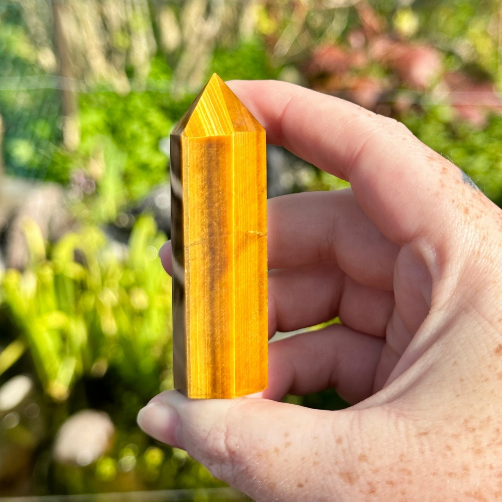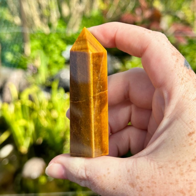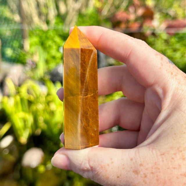 Gold tiger eye combines earth energy with the energies of the sun to create a high vibrational state that is grounded while bringing the spiritual energies to you. If placed on the third eye it will enhance your psychic abilities. Tiger eye balances the lower chakras and stimulates the rise of kundalini energy. Gold tiger eye livens your ability to remember your dreams and use the dreams for spiritual advancement. This stone sparks your imagination, which is the key to understanding your intuition. The energy of this stone reminds you to embrace your spiritual potential and allow divinity into your spiritual practice. Use this stone to connect with the spiritual power of the sun as a source of nourishment for your soul.
