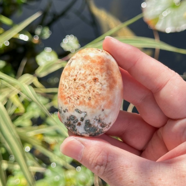 Cherry Blossom Agate/Blomster Agat Håndstein. Denne er ca 6,5cm lang og veier ca 90g. Det er den på bildene du får hvis du bestiller denne.