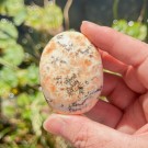 Liten Vulkan Agat/Volcano Agate håndstein. Denne er 4,5x3x1,5cm og veier ca 31g. Naturlige groper og merker forekommer.