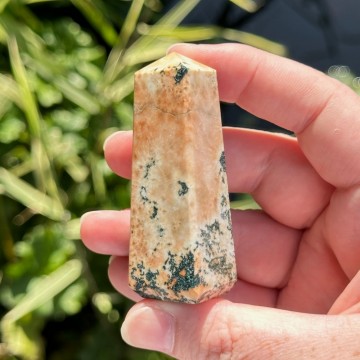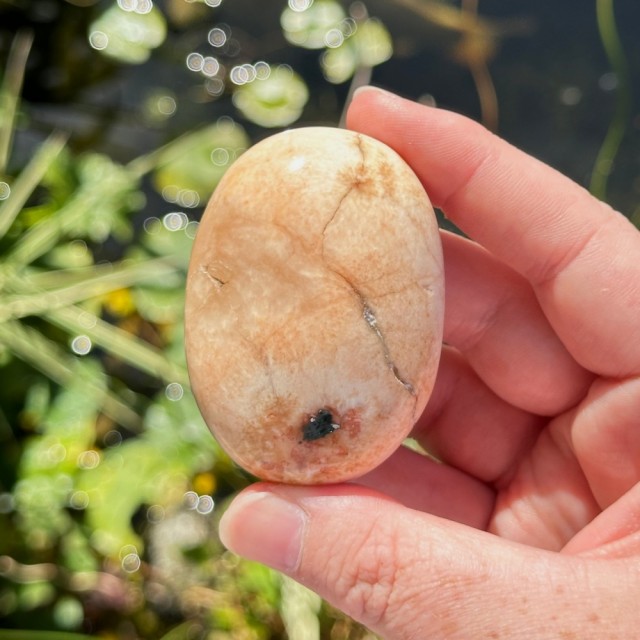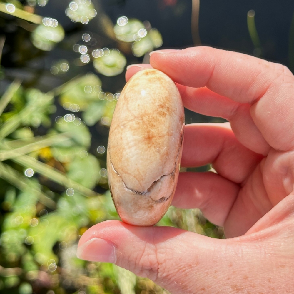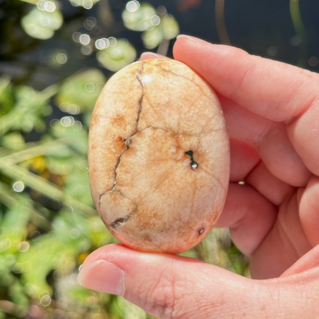 Cherry Blossom Agate/Blomster Agat Håndstein. Denne er ca 6,5cm lang og veier ca 90g. Det er den på bildene du får hvis du bestiller denne.