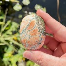 Money Agate/Indonesisk Blodstein håndstein. Denne er 6,2x4,2x2,3cm og veier ca 87g. OBS: Naturlige groper og merker forekommer. Det er den krystallen på bildene du får hvis du bestiller denne.
