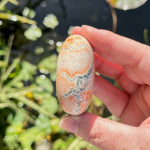 Mose Agat/Tre Agat lommesteiner. Disse er ca 5cm lange. Det vil bli tilfeldig plukket en til deg hvis du bestiller en av disse.