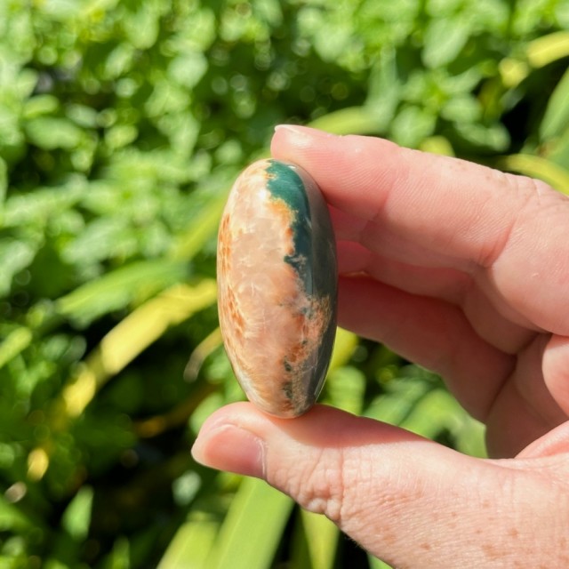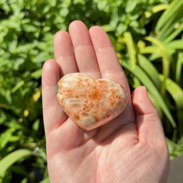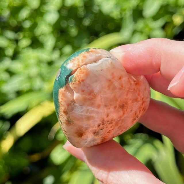 Nydelig kombinasjon av Tre Agat, Heulanditt og Skolesitt. Denne veier ca 63g og er 4,9x6,3x2,7cm. Det er den krystallen på bildene du får hvis du bestiller denne. Bildene er tatt ute i sollys. OBS: Naturlige merker, hulrom og "cracks" forekommer på disse!