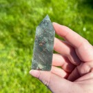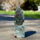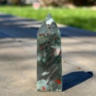 Nydelig Afrikansk Blodstein/Steonitt tårn. Dette er 9,3cm høyt og veier ca 120,5g. Det er den på bildene du får hvis du bestiller denne. Små merker kan forekomme. OBS: Alle bildene er tatt ute i sollys.