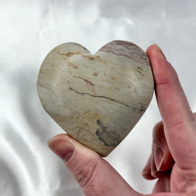 Nydelig Dendrit Jaspis/Bilde Jaspis hjerte. Dette veier ca 151g og er 6,4x5,7x3cm.