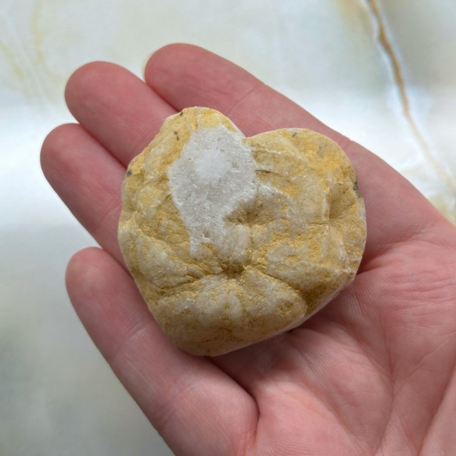 Nydelig Golden Healer og Pyritt hjerte. Dette veier ca 68g og er 3,7x5,2x2,4cm. Det er den krystallen på bildene du får hvis du bestiller denne. Små naturlig merker kan forekomme. Bildene er tatt ute i sollys.