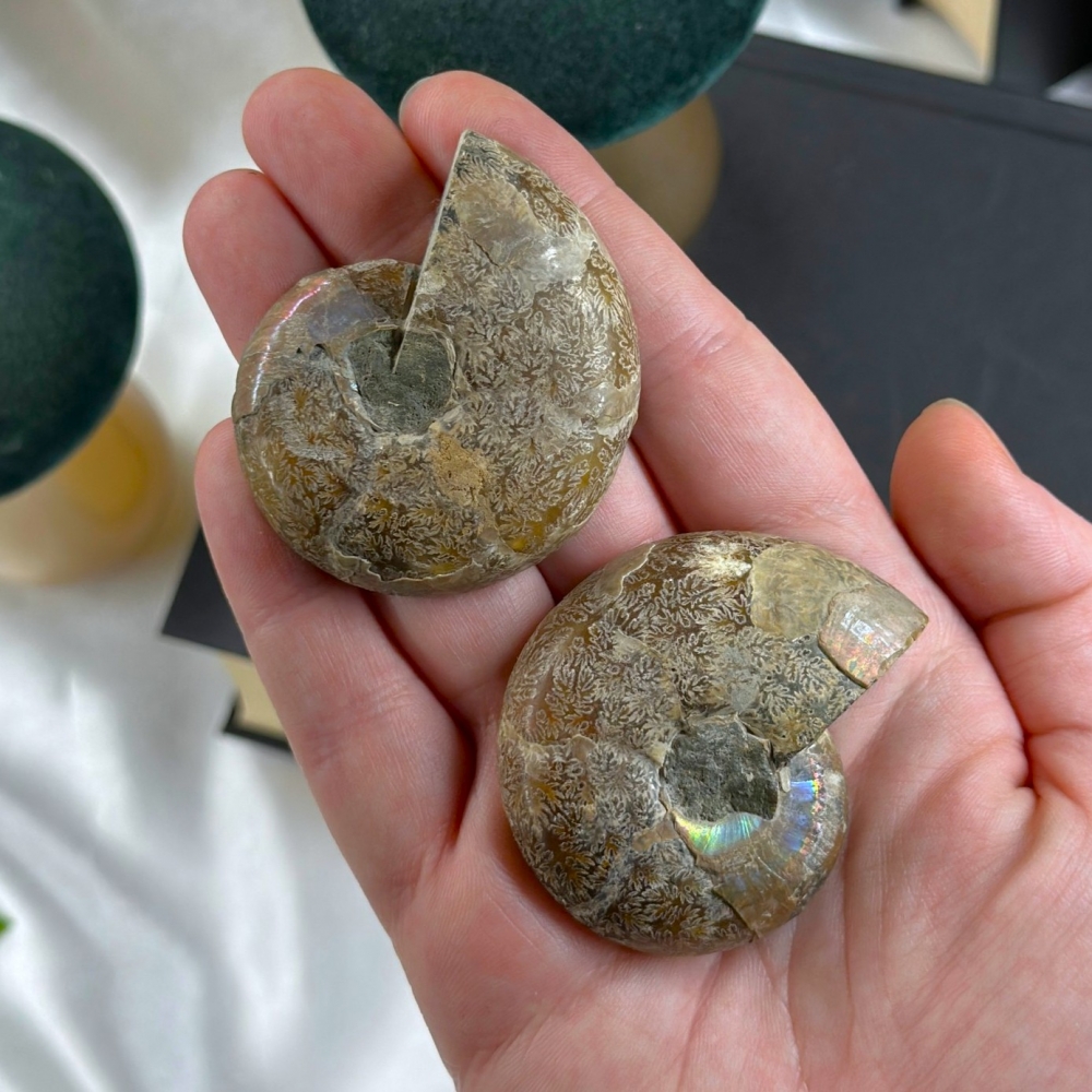 Ammonitt er ikke bare en fossil - det er et flere hundre millioner år gammelt kunstverk fra havets dyp. En spiralformet skapning fra dinosaurenes tid, bevart i stein og fylt med jordens historie, kraft og mystikk. Disse er 5cm og veier ca 81g.