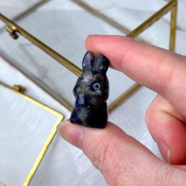 Kjempe søt krystall mini figur utskjæret som en Kanin i Sodalitt! Disse er så fine og ha i samlingen sin! Prisen er per stk.