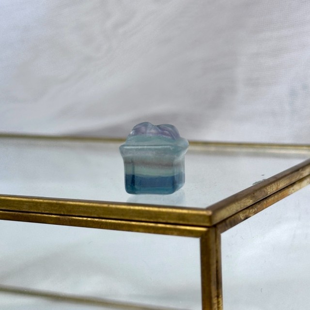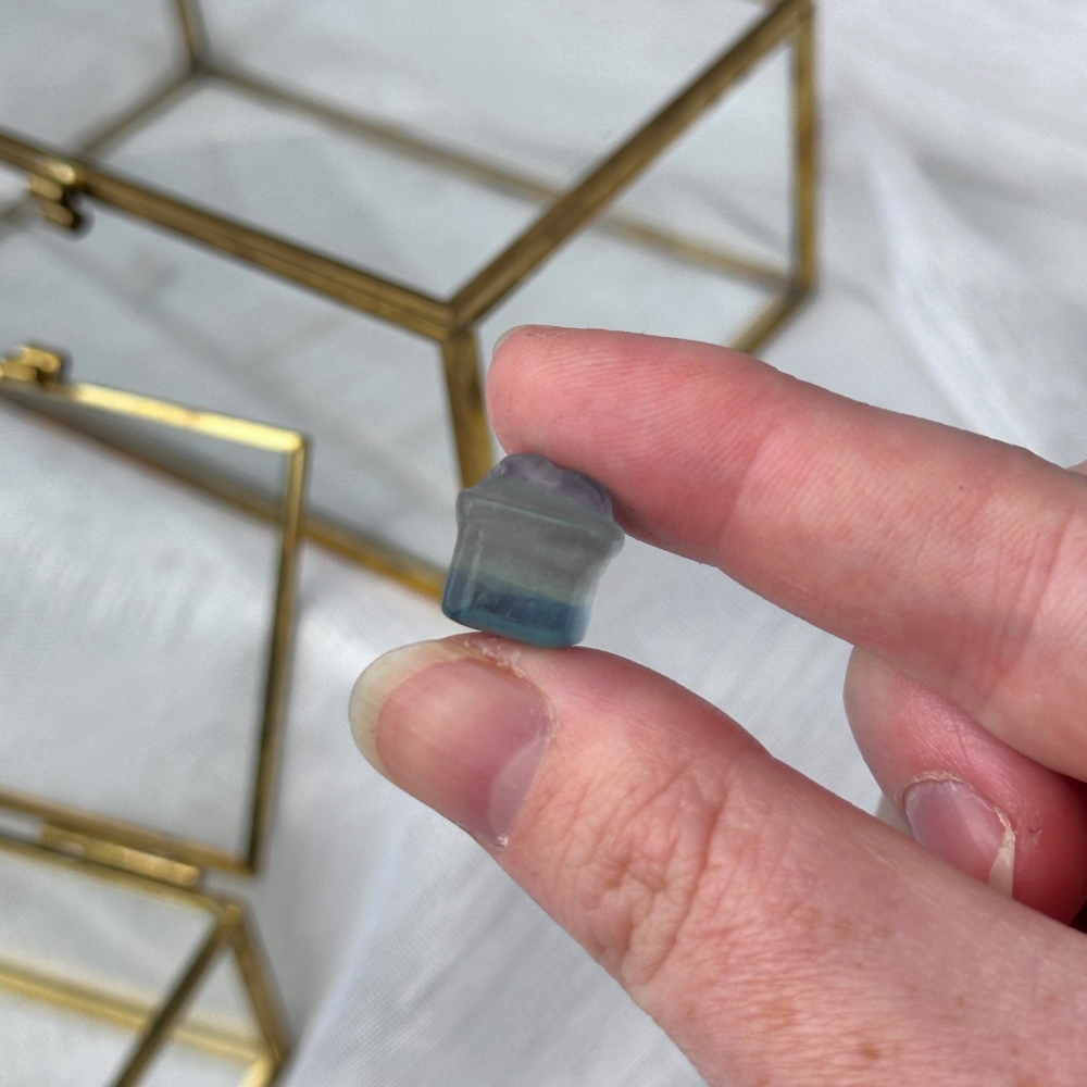 Kjempe søt liten mini blå Fluoritt julegave. Disse er ca 1,3-1,4cm høye. Prisen er per stk.