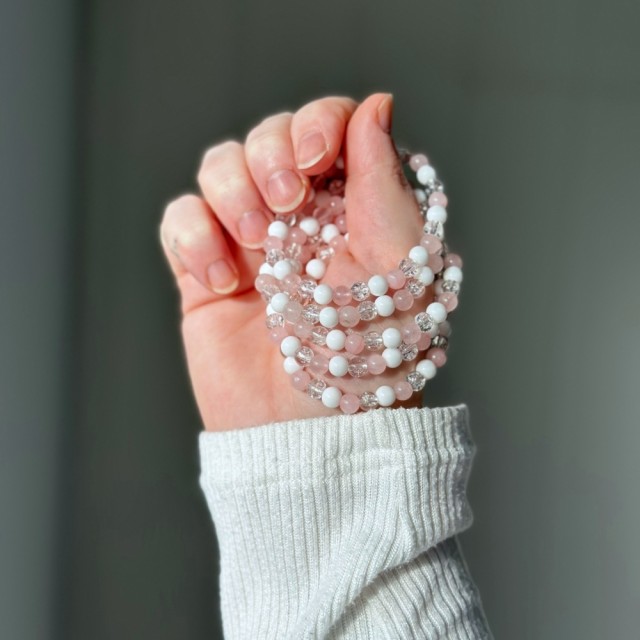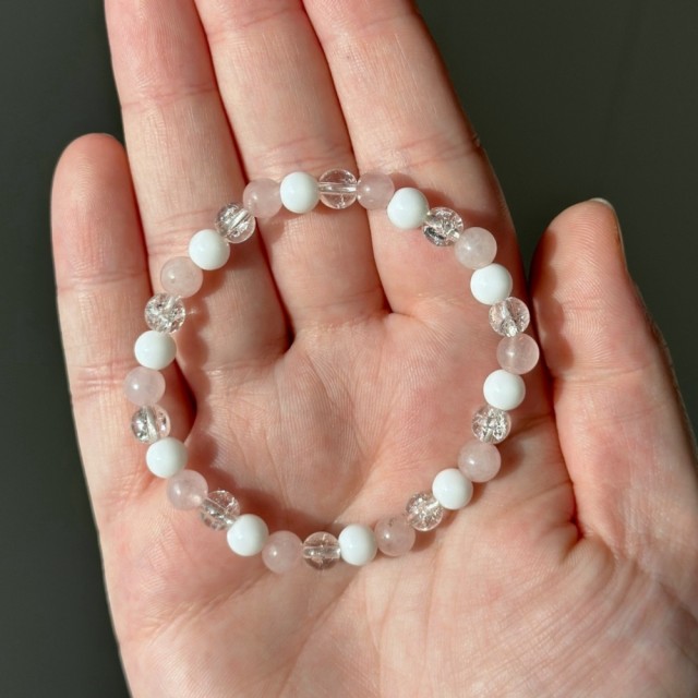 Rosenkvarts, Hvit Jade & Crackle Quartz Armbånd, 6mm