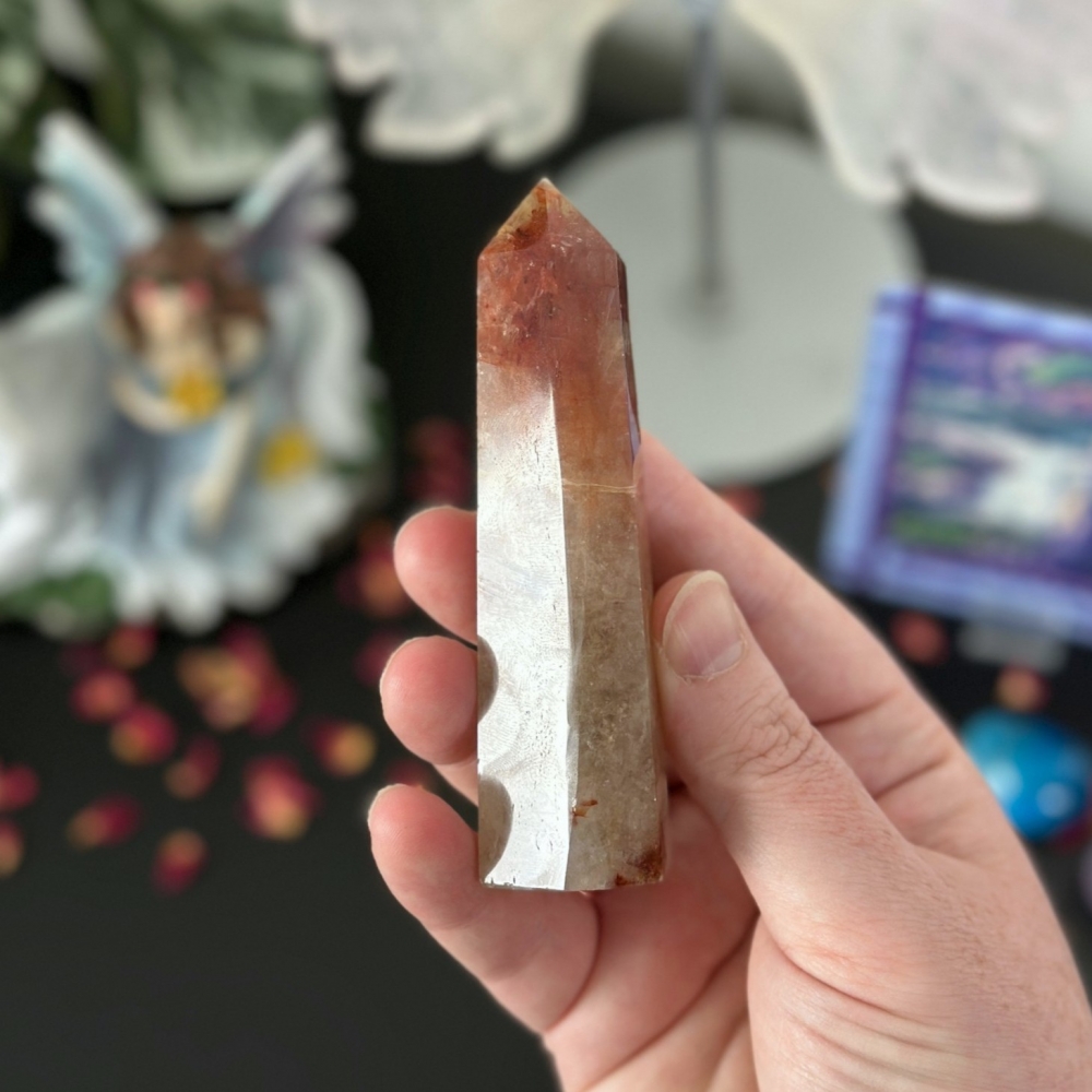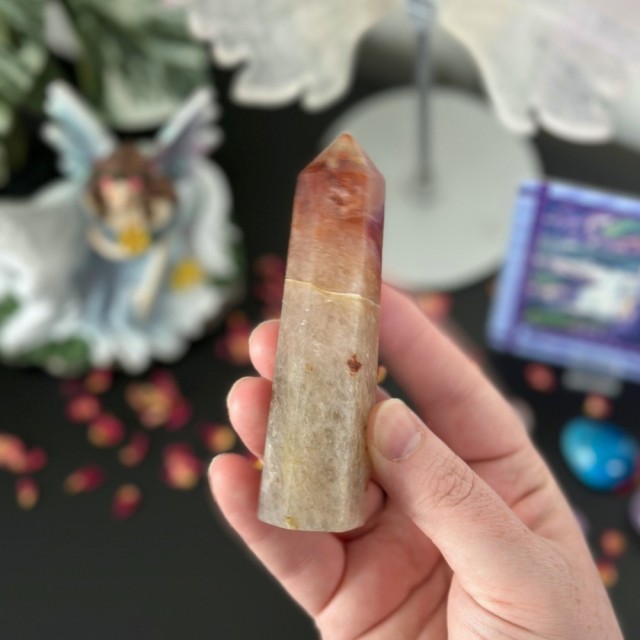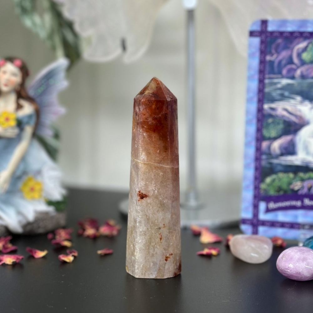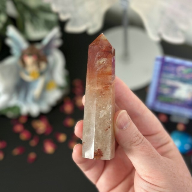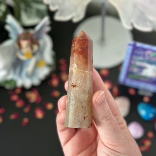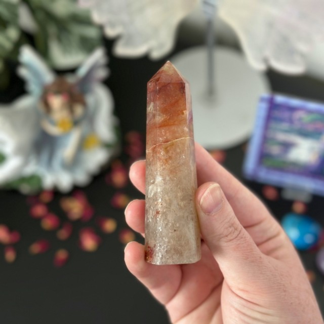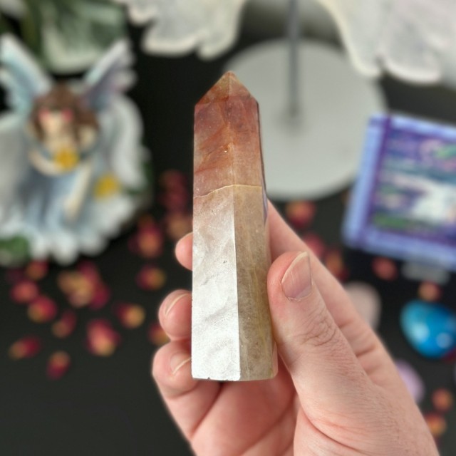 Nydelig Mandarinkvarts (Tangerinekvarts) gruppe på 217g. Denne er ca 9x6,6x5,3cm. Denne har nydelige clusters på begge sidene sine, den ene er mørk og den andre siden er lysere. Det er den krystallen på bildene du får hvis du bestiller denne.