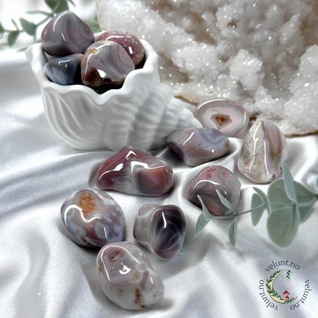 Botswana Agat krystallen er en utmerket stein for å rebalansere og harmonisere kropp, sinn og ånd. Den renser og stabiliserer auraen, eliminerer og transformerer negativitet. Botswana Agat forbedrer mental funksjon, forbedrer konsentrasjon, persepsjon og analytiske evner. Det lindrer og beroliger, helbreder indre sinne eller spenninger og skaper en følelse av trygghet og trygghet.