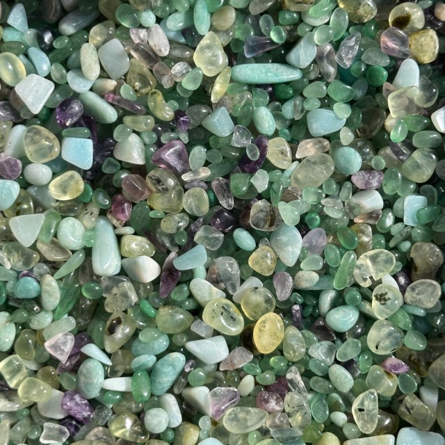 Magical Woods Chips - 50g Regnbue Fluoritt, Amasonitt, Prehnitt & Grønn Aventurin krystallmix. Lag din egen spelljar, bruk i dekorasjon - fantasien stopper ikke! PrisNOK55,00 inkl. mva. På lager: 7 stk. Antall Kjøp Ønskeliste Del dette