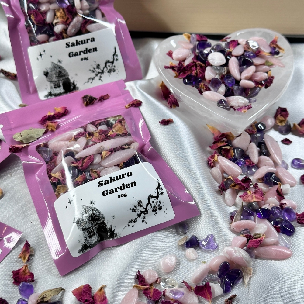 Ametyst, Rosa Opal & tørkede Roseblader.