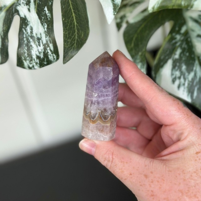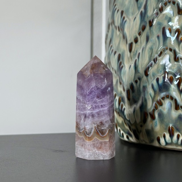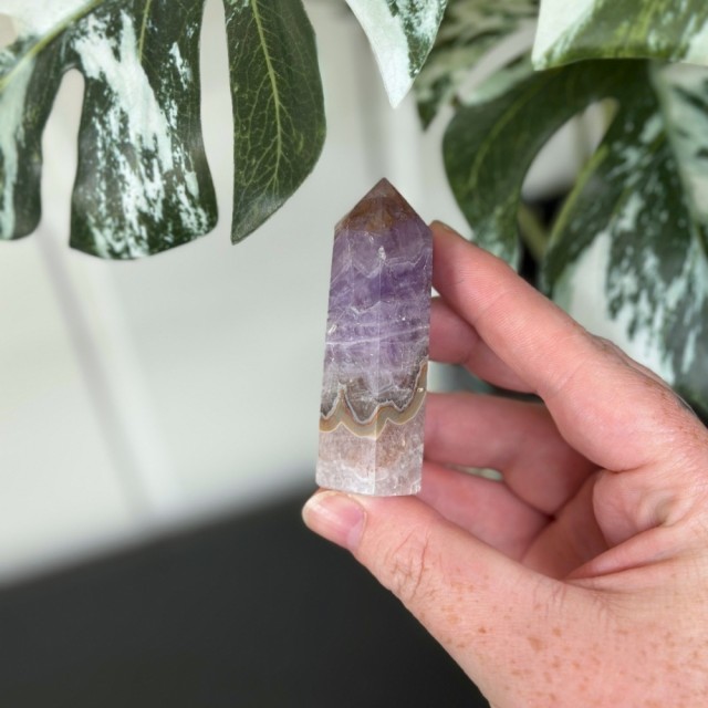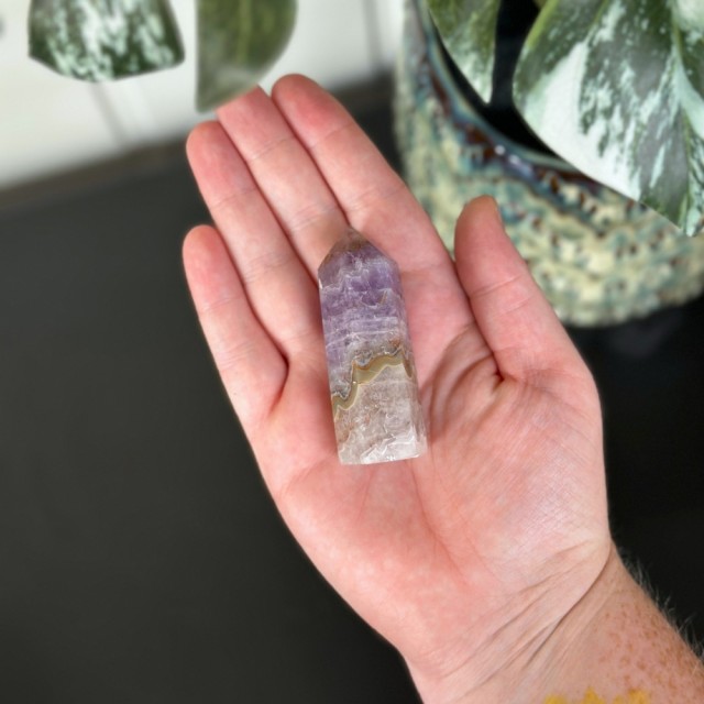 Ametyst med Meksikansk Blondeagat er en krystall for både sinn og sjel - en perfekt forening av ametystens rolige, spirituelle energi og agatens livlige jordkraft. Der ametyst åpner for intuisjon, indre ro og visdom, tilfører blondeagaten glede, stabilitet og en varmende energi som løfter humøret.