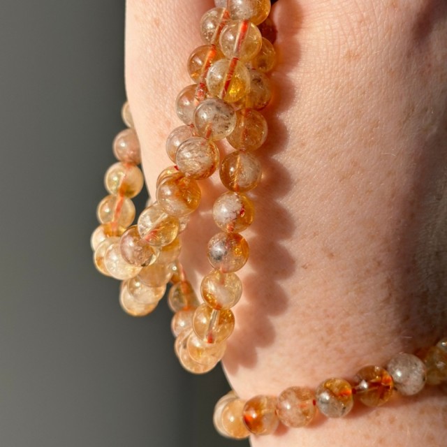 Ubehandlede Citrin krystaller har en tendens til å finnes i blekgule nyanser, mens varmebehandlet Ametyst kan finnes i lyse orangish gul og rødoransje fargetoner.