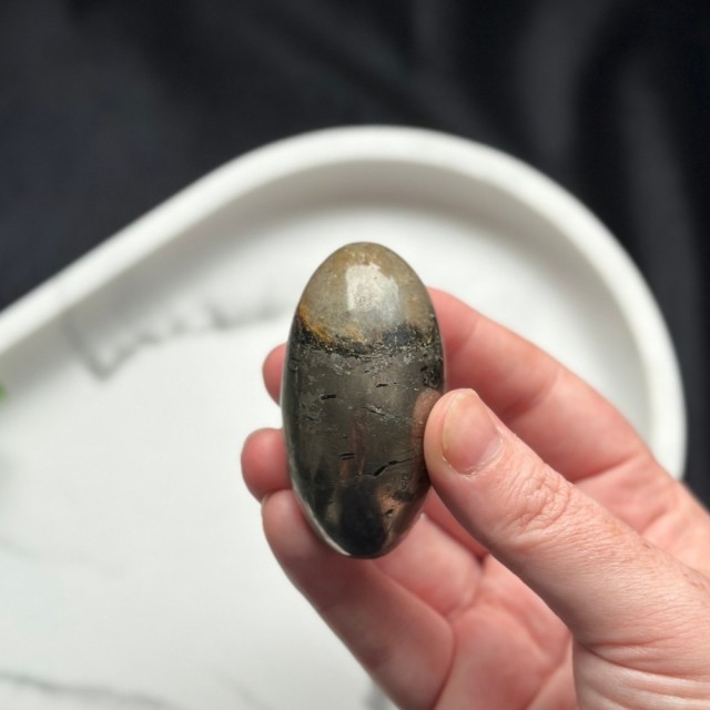 Nydelig unik blanding av Golden Healer og Pyritt shiva. Denne veier ca 141g og er 6,1cm lang. Det er den krystallen du ser på bildene du får hvis du bestiller denne. Små merker kan forekomme.